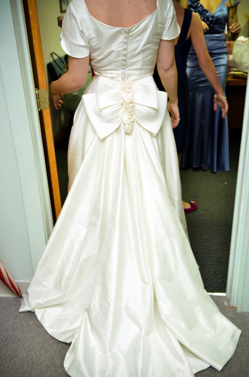 After stalling as long as I could waiting for MOH MD and Red, it was time to get dressed. First the little dress. There were buttons over the zipper but it really did not take that long to get into.